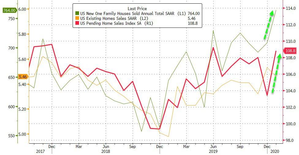 ZeroHedge - Feb 27th 2020 10:04am EST Pending Home Sales Spike In January, Will Stock Slump Hurt Housing Market? Once again, pending home sales is the tie-breaker in US housing as new home sales soared and existing home sales dipped in January. Pending home sales fell 4.9% MoM in December and were expected to rebound 3.0% MoM in January but accelerated more, […]
