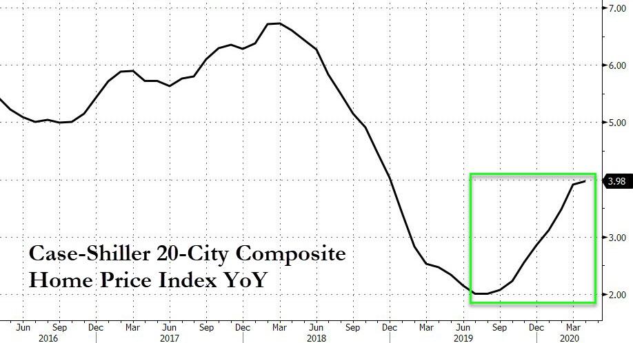 ZeroHedge - Jun 30th 2020 9:04am EDT Despite National Lockdown & Sales Collapse, US Home Prices Accelerated For 9th Straight Month In April Tyler Durden Tue, 06/30/2020 – 09:04 While recent home sales data has rebounded stunningly, Case-Shiller’s home-price appreciation index was expected to show signs of slowing in April (always lagged) – the peak of the lockdowns across the states… but […]