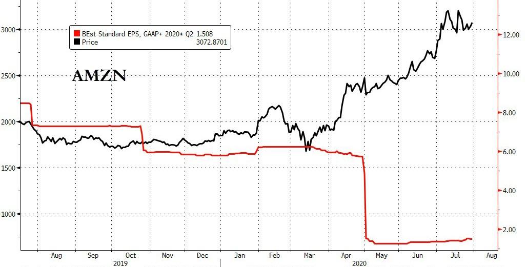 ZeroHedge - Jul 30th 2020 4:30pm EDT Amazon Soars After Smashing Expectations, Guiding Sharply Higher Tyler Durden Thu, 07/30/2020 – 16:30 Heading into today’s earnings call juggernaut which sees almost $5 trillion in market cap report among just 4 companies (AAPL $1.7TN, $1.2TN, GOOGL $1TN, AMZN FB $670BN) Amazon had emerged as the one FAAMG stock that was viewed as the cleanest […]