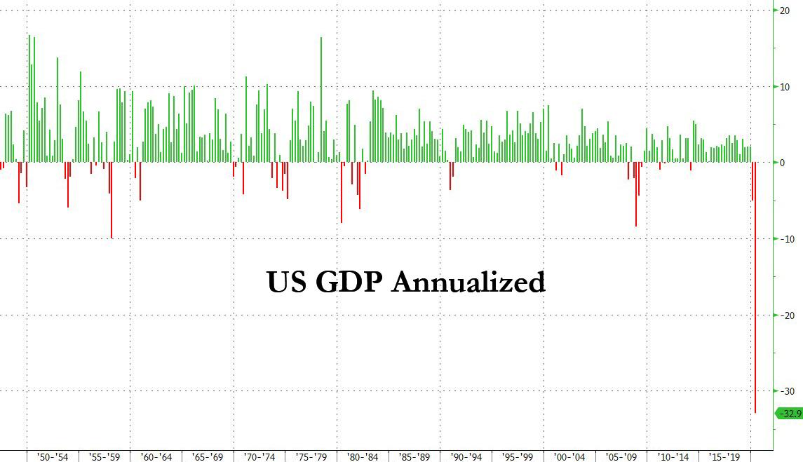 US Q2 GDP Crashes By A Record 32.9%, Worse Than Great Depression