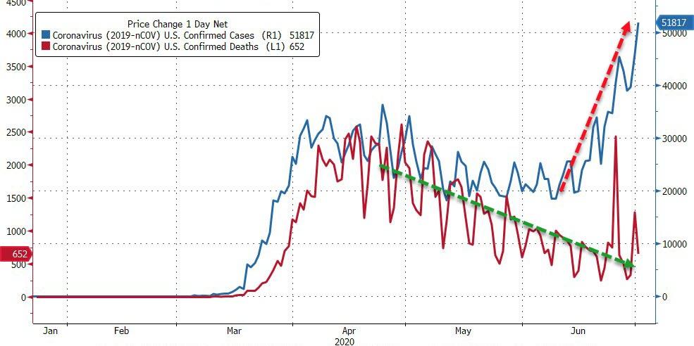 ZeroHedge - Jul 2nd 2020 4:01pm EDT Stocks Soar To Best Week In 3 Months As COVID-Comeback Concerns Mount Tyler Durden Thu, 07/02/2020 – 16:01 Perhaps the market is seeing the scaremongering from health officials for what it is is and calling locking-down-politicians’ bluffs? US COVID cases are soaring… (just don’t mention the low death rates)… Source: Bloomberg And that maybe why […]