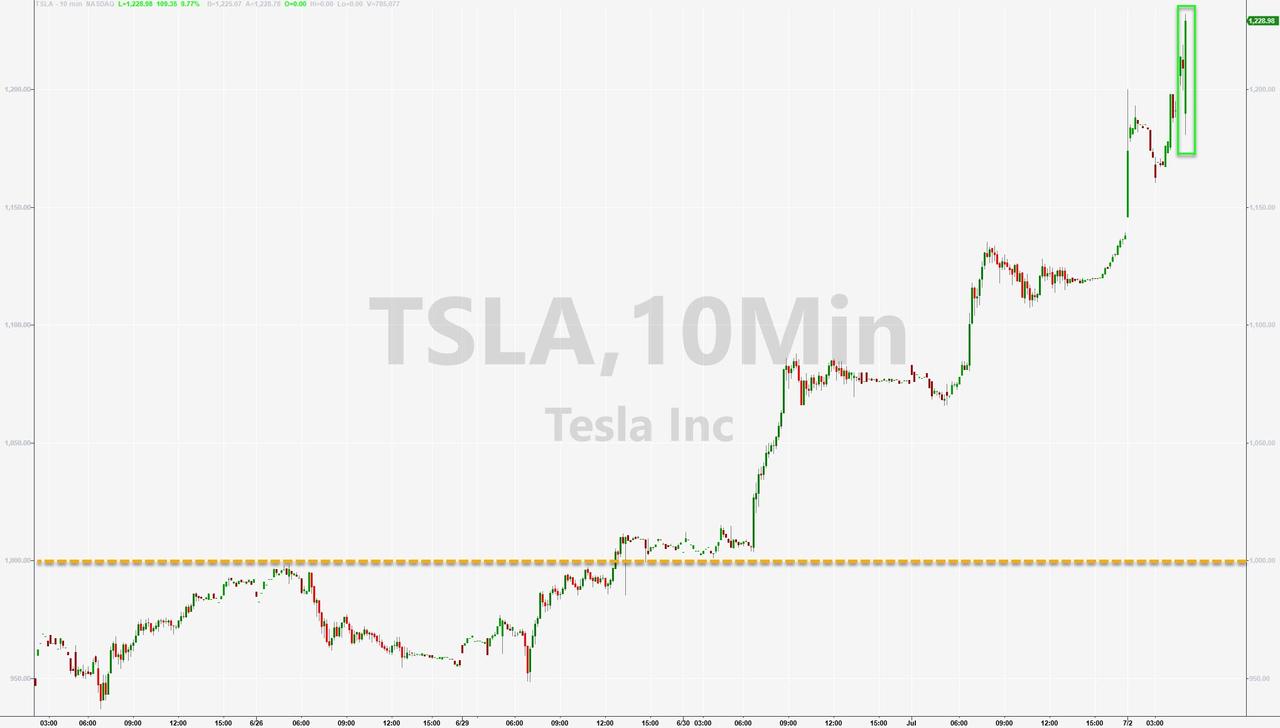 ZeroHedge - Jul 2nd 2020 7:57am EDT Futures Surge On Even More “Optimism” Ahead Of Payrolls Tyler Durden Thu, 07/02/2020 – 07:57 After sliding to 2,983.5 in early Sunday trading on fears of a second wave of covid infections, futures have completely forgotten what they were concerned about at the start of the week, and have since levitated in largely linear fashion […]