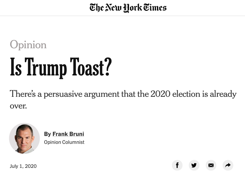 Daily Stormer - Jul 2nd 2020 7:15am EDT The New York Times ran an op-ed this week saying “Trump has already lost.” I think conservatives are seeing this and thinking, “giggle giggle giggle, that’s what they said last time, tee-hee-hee.” All these damn people do is giggle. I swear, the blacks could be in the house of a conservative, and while they’re raping […]