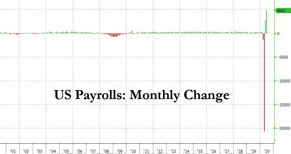 Jobs Report Shock: June Payrolls Soar By Record 4.8 Million, Crushing Expectations As Unemployment Rate Tumbles