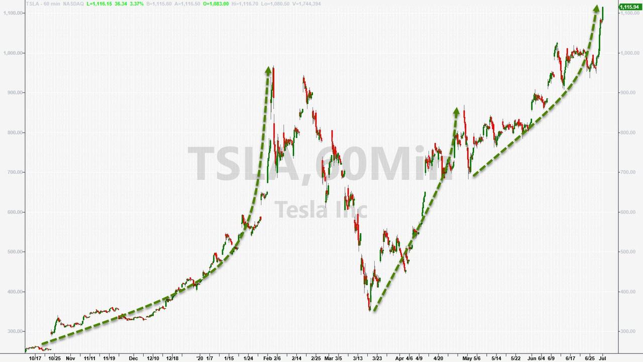 ZeroHedge - Jul 1st 2020 9:52am EDT Tesla Surpasses Toyota, Becomes World’s Most Valuable Automaker Tyler Durden Wed, 07/01/2020 – 09:52 It seems just earlier this week that Tesla surpassed $1,000 per share, which it did… on Monday. Fast forward 48 hours when the stock which has now become a poster child for everything that is berserk in our banana markets has […]