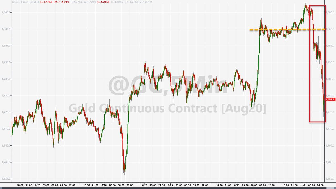 ZeroHedge - Jul 1st 2020 10:09am EDT Precious Metals Pummeled – Who Needs Safe-Havens When We Have A ‘Vaccine’? Tyler Durden Wed, 07/01/2020 – 10:09 Medical data on 24 people promoted via press release… stocks panic-bid and precious metals puked… This morning’s vaccine headlines were enough to prompt selling to accelerate into the London Fix and bust stops through $1800… Silver was […]