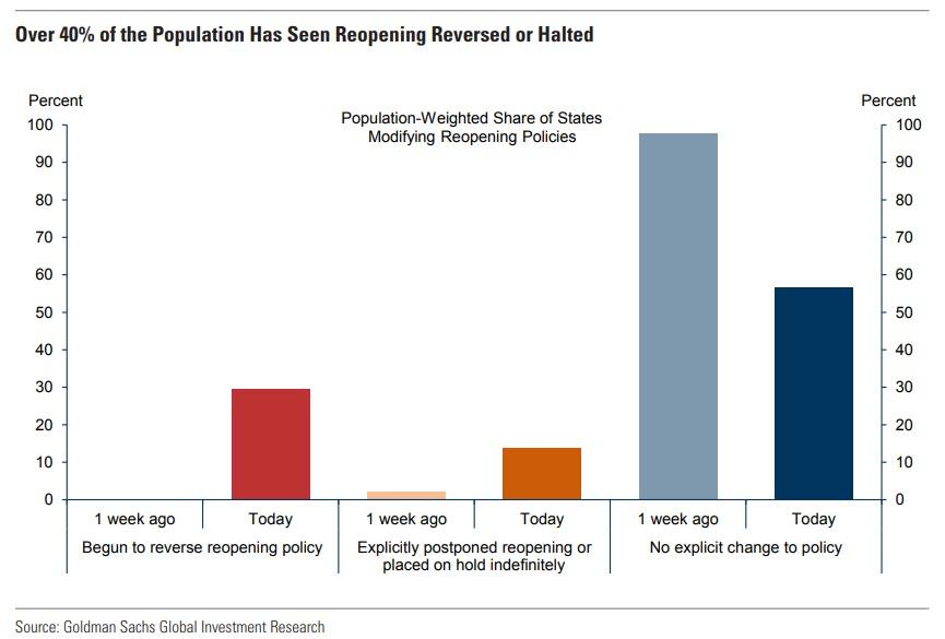 Goldman: Over 40% Of The US Has Reversed Or Placed Reopenings On Hold