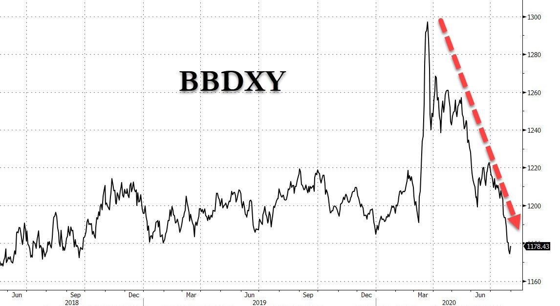 ZeroHedge - Jul 31st 2020 3:45pm EDT The Fed’s Dollar Debasement Will Trigger An Unprecedented Structural Shift Tyler Durden Fri, 07/31/2020 – 15:45 Whether it is merely the continued debasement of the dollar by a Fed that has gone full-tilt on money printing, or a historic transition away from the current global reserve currency, the recent sharp drop in the US currency […]