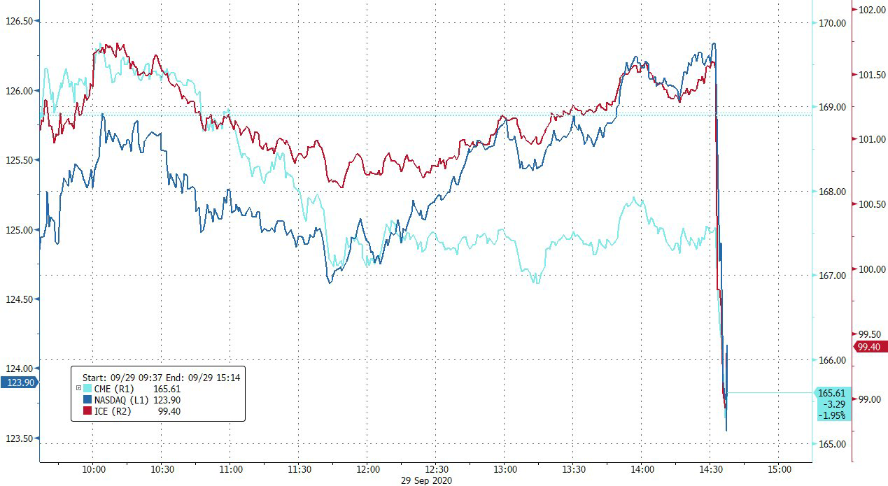 ZeroHedge - Sep 29th 2020 2:55pm EDT Trump’s Anti-Trust “Cop” Targets Wall Street’s Data Pricing In Blow To Exchanges Tyler Durden Tue, 09/29/2020 – 14:55 Until now, practically all of the leaks about the anti-trust group gestating inside the FTC have focused on big tech. But in an unexpected pivot, Bloomberg just reported that regulators are investigating the different data pricing packages […]