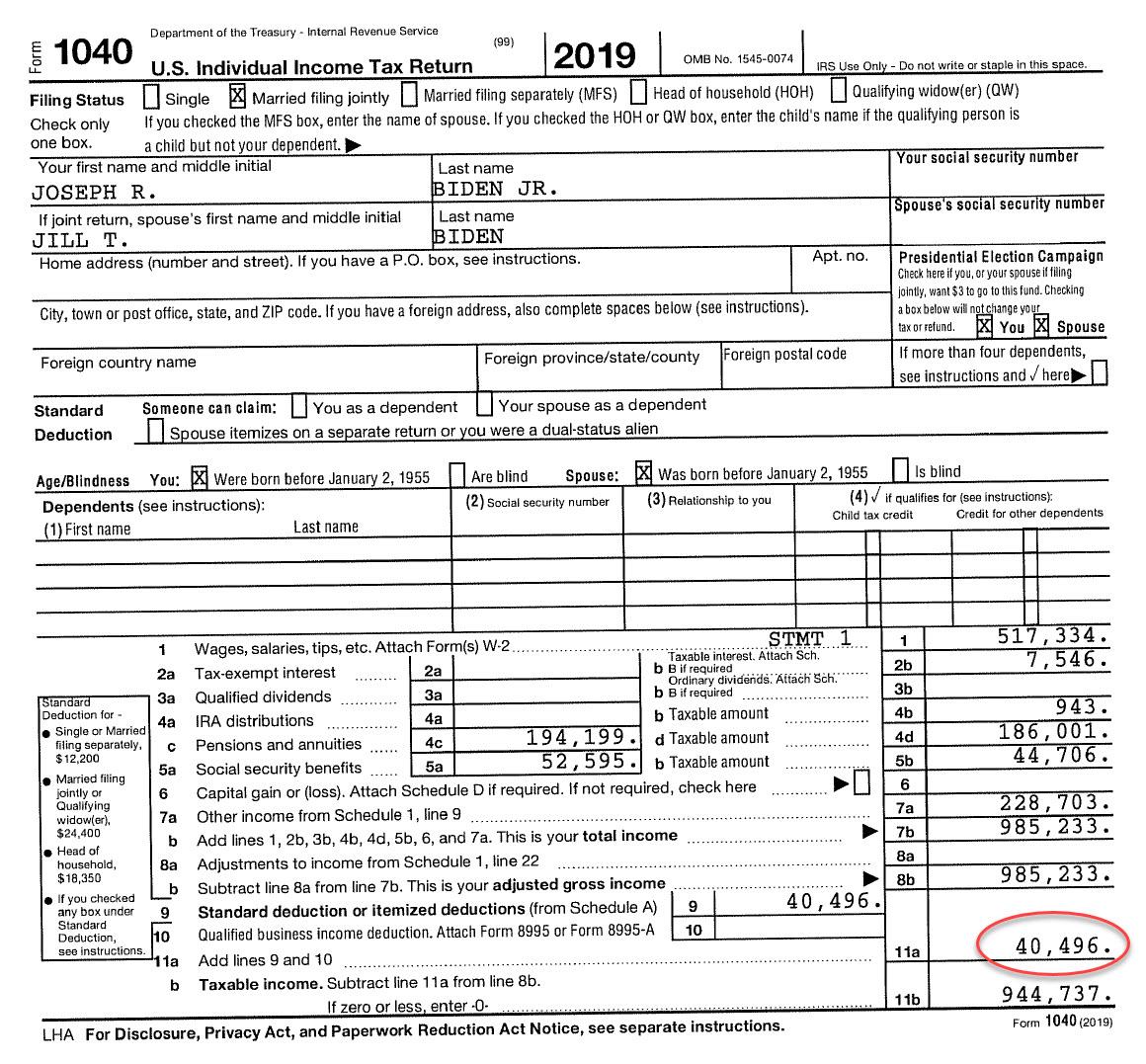 ZeroHedge - Sep 29th 2020 1:57pm EDT Biden Releases 2019 Tax Returns Hours Before First Debate; Paid $300,000 In Taxes Tyler Durden Tue, 09/29/2020 – 13:57 With just over 8 hours to go before the first debate, Joe Biden and his wife, Jill, released their 2019 tax returns. The filings shows that the Bidens reported $985,233 in adjusted gross income in 2019, […]