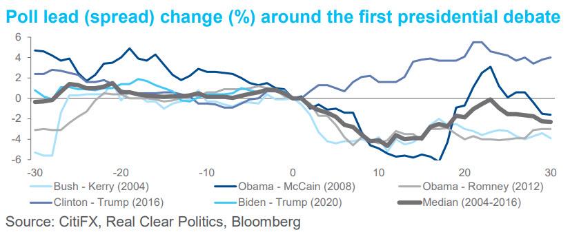 ZeroHedge - Sep 29th 2020 2:41pm EDT Does Tonight’s Debate Even Matter? Tyler Durden Tue, 09/29/2020 – 14:41 Opinions are split about tonight’s debate: On one hand, DB’s Jim Reid says that it “will be critical, since it represents one of the last set-piece opportunities for either candidate to change the contours of the race.” On the other, as Rabobank’s Michael Every […]