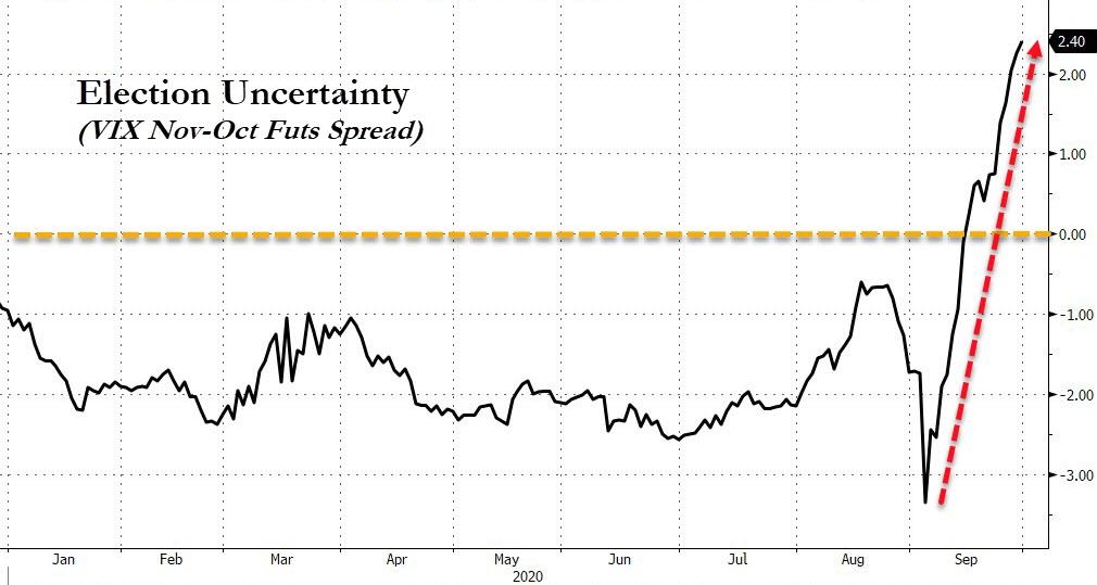 ZeroHedge - Sep 30th 2020 12:40pm EDT “Contested Election” It Is: Here Is How To Trade It Tyler Durden Wed, 09/30/2020 – 12:40 Out of the ashes of the biggest dumpster fire debate in US history, one thing emerged: a contested election – something which JPMorgan two weeks ago called the “worst case scenario for markets into year end” – is now […]