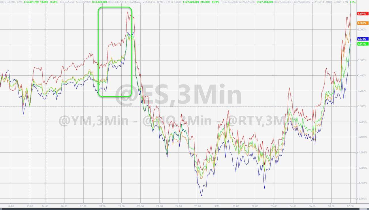ZeroHedge - Sep 30th 2020 10:03am EDT Gold Pumped-n-Dumped As Stocks Melt-Up To Overnight Debate Highs Tyler Durden Wed, 09/30/2020 – 10:03 So… with futures down hard overnight, talking heads proudly proclaimed that this must mean Biden won the debate. So with stocks now surging to overnight highs, does that mean Trump won? Some are claiming this panic-bid is driven by Pelosi’s […]