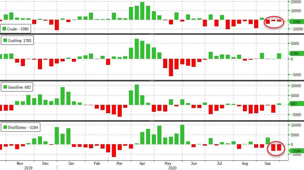 ZeroHedge - Sep 30th 2020 10:35am EDT WTI Holds Stimulus-Hope Gains After Surprise Crude Draw Tyler Durden Wed, 09/30/2020 – 10:35 Oil prices rebounded overnight as stocks rallied on fiscal stimulus hope and the API-reported inventory data sank in. “Traders see oil demand as fragile,” said Paola Rodriguez-Masiu, senior oil-market analyst at Rystad Energy. “We may see some production needing to be […]