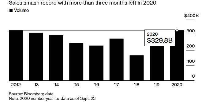 ZeroHedge - Sep 30th 2020 6:30am EDT Bond Issuance Smashes Monthly Record For The 6th Time In Past 7 Months Tyler Durden Wed, 09/30/2020 – 06:30 One week after the US junk bond market smashed the annual issuance record, when sales of high yield (the term is used very loosely these days) debt hit a record $330 billion last Wednesday, surpassing the […]