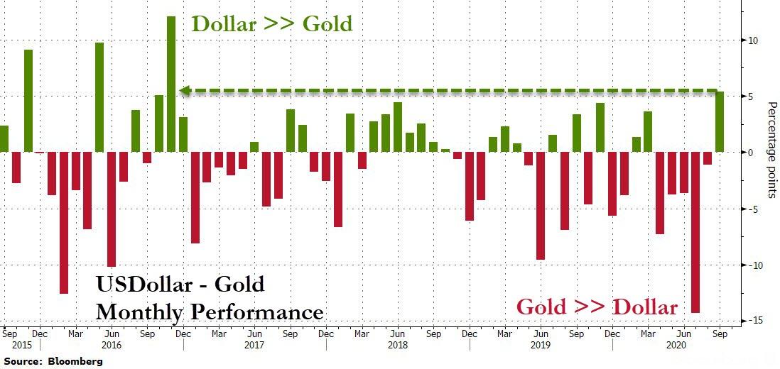 ZeroHedge - Sep 30th 2020 6:00am EDT On Gold, The Dollar, & Real Yields Tyler Durden Wed, 09/30/2020 – 06:00 Authored by Ven Ram, FX and rates strategist at Bloomberg, Gold is fast losing its status as this year’s go-to asset thanks to higher real rates and the dollar’s comeback. After trading at a considerable premium over estimated fair value, it is […]