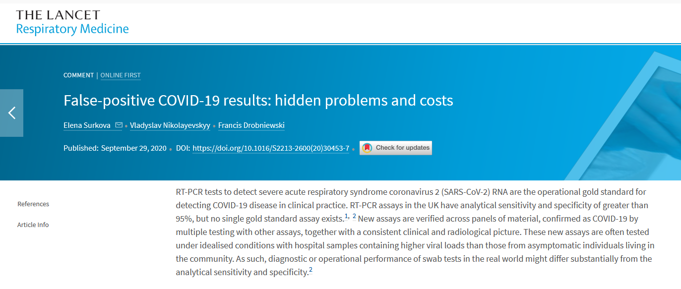Infowars - Oct 2nd 2020 9:25am EDT“Up to 90 percent of people testing positive carried barely any virus,” NYT reported.