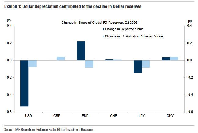 ZeroHedge - Oct 1st 2020 5:00pm EDT “De-Dollarisation Theme Is Intact”: Latest IMF Reserve Data Shows Continued Flight From Dollar, Into Gold Tyler Durden Thu, 10/01/2020 – 17:00 On Wednesday, the IMF released the latest Currency Composition of Official Foreign Exchange Reserves (COFER) report for Q2 2020. It showed that while the Dollar share of global reserves had increased in Q1 2020, […]