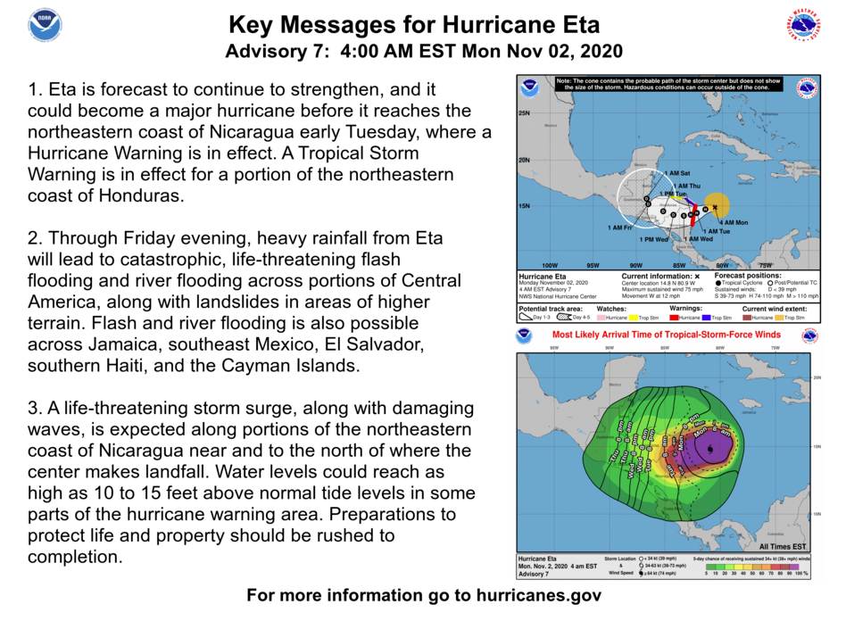 “Devastating” Hurricane Eta To Strike Nicaragua Early Tuesday