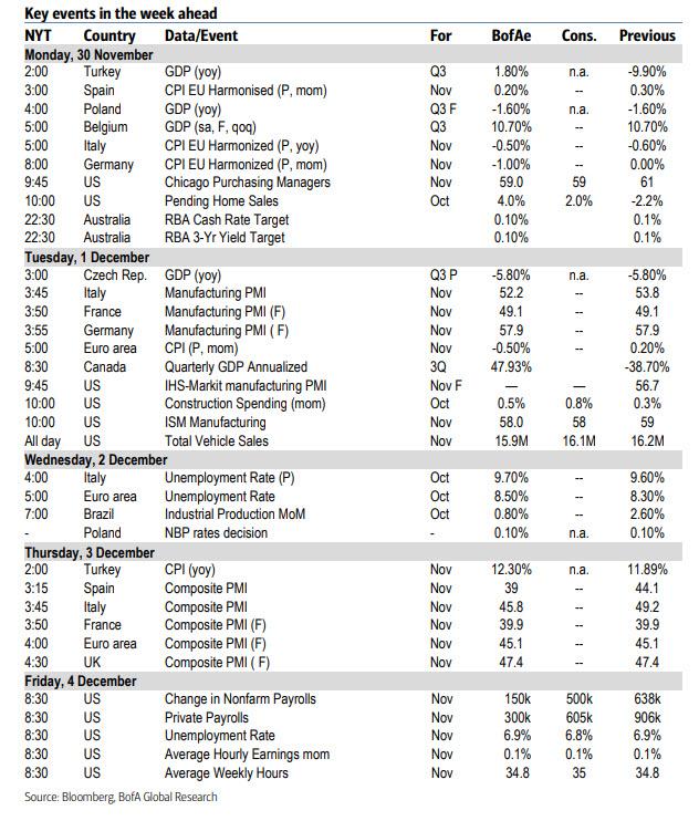 Key Events In The Coming Busy Week: Jobs, PMIs, And Central Banks Tyler Durden Mon, 11/30/2020 – 09:39 With just a handful of trading days left until the end of what has been an absolutely insane 2020, it’s shaping up to be a fairly busy week for data but as DB’s Jim Reid writes, “how […]