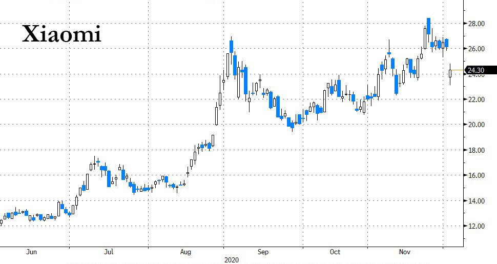 ZeroHedge - Dec 2nd 2020 9:34am EST China’s Second Biggest Smartphone Maker Tumbles Most Ever After Record Equity Offering Tyler Durden Wed, 12/02/2020 – 09:34 China’s second largest cell phone maker, Xiaomi, dropped the most ever in Hong Kong after the company raised US$3.1 billion in the city’s biggest follow-on equity offering on record. The stock plunged as much as 12% to […]