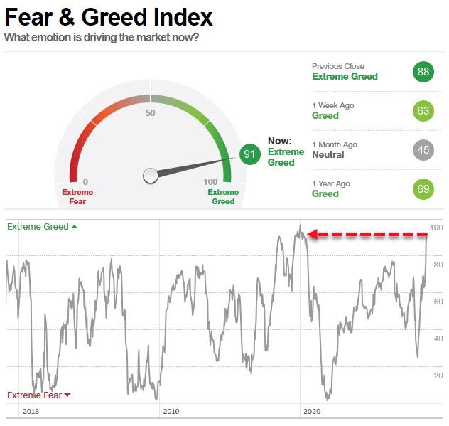 ZeroHedge - Dec 1st 2020 10:35am EST Citi Warns “100% Probability Of Loss” In Most “Euphoric” Market Since Dot Com Bubble Tyler Durden Tue, 12/01/2020 – 10:35 Sometimes “greed” is not good. The last time the market was this ‘extreme’ in its greed did not end well, but as FOMO dominates any downside fears, Citigroup’s Panic-Euphoria indicator – which tracks metrics from […]