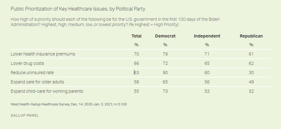 Ryan Dawson - Jan 30th 2021 10:50pm ESTGallup: Most Say Reducing Cost of Health Care High Priority for Biden