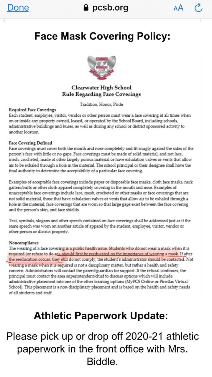 Students at Florida High School Warned They Will be “Re-Educated” If Caught Not Wearing a Mask