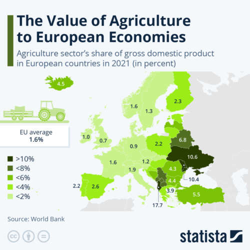 ZeroHedge - Jul 31st 2023 5:45am EDT The Value Of Agriculture To European Economies According to World Bank figures, Agriculture, forestry and fishing account for around 1.6 percent of the EU’s gross domestic product. However, as Statista’s Martin Armstrong reports, there is wide variation in the continent though, with Germany, for example, one of the least economically dependent countries in Europe on agriculture, alongside the […]
