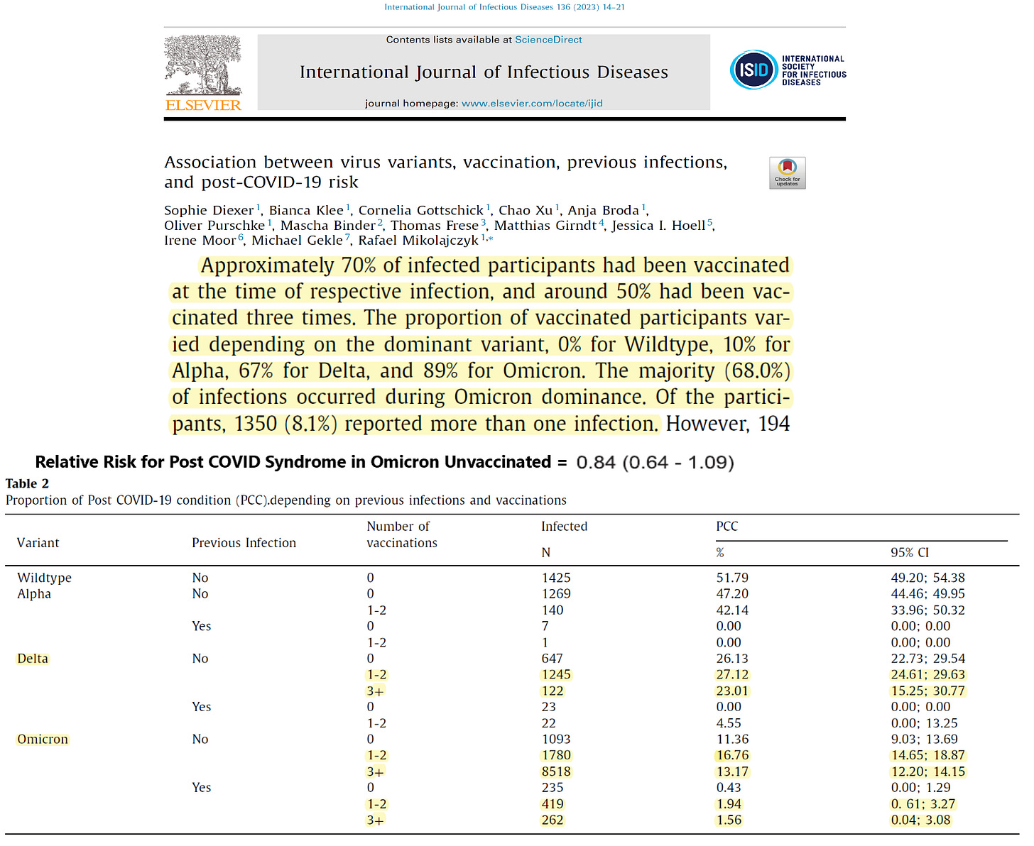 Unvaccinated with Omicron Infection have Lowest Risk of Post-COVID Syndrome