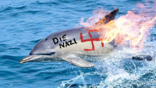 Stew Peters Network - Mar 19th 2025 4:15pm EDTDemocrats Begin Spray-Painting Swastikas On Dolphins (Satire)