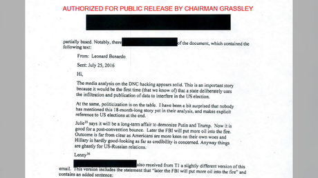 Declassified Russiagate document exposes deep state coverup – top US senator