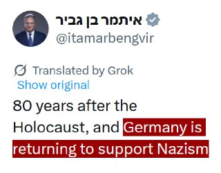 Disclose TV - Jul 31st 2025 9:24am EDT NEW – Israeli National Security Minister Itamar Ben-Gvir says, “Germany is returning to support Nazism” after Germany’s Foreign Minister met with Netanyahu today amid speculation that Berlin may recognize the State of Palestine. @disclosetv