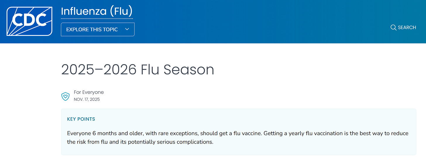 Based on the most recent data from the Centers for Disease Control and Prevention (CDC) who state virtually everyone should be influenza vaccinated: