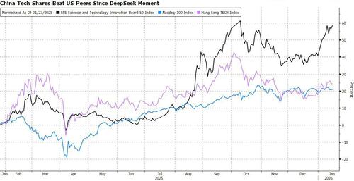 Nearly a year after DeepSeek’s AI breakthrough rattled global markets, China is entering 2026 with a fresh wave of technological advances that are powering a stock rally, even as its economy remains fragile.