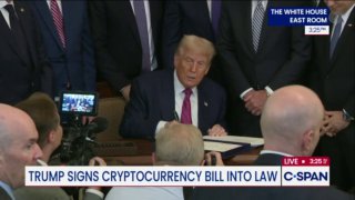 NOW - Trump signs "GENIUS" cryptocurrency bill into law. disclosetv