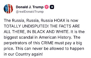 NEW - Trump calls the “Russia HOAX”... the “biggest scandal in American History.” disclosetv