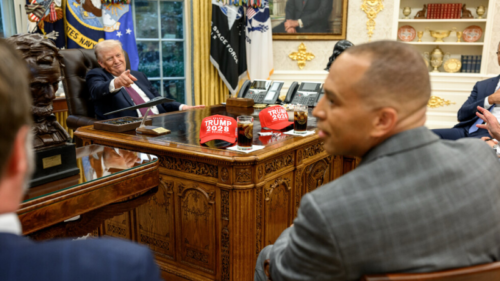 POTUS Trolls Dems With “Trump 2028” Hats During Oval Office Meeting On Gov’t Shutdown