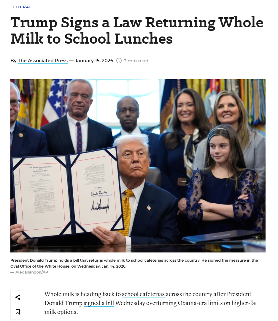 By Peter A. McCullough, MD, MPH Recently President Trump signed the “Whole Milk for Healthy Kids Act.” Was this prudent given 22.5% of U.S. children and adolescents aged 2–19 are overweight or obese as of 2023–2024? Subscribe now Read more
