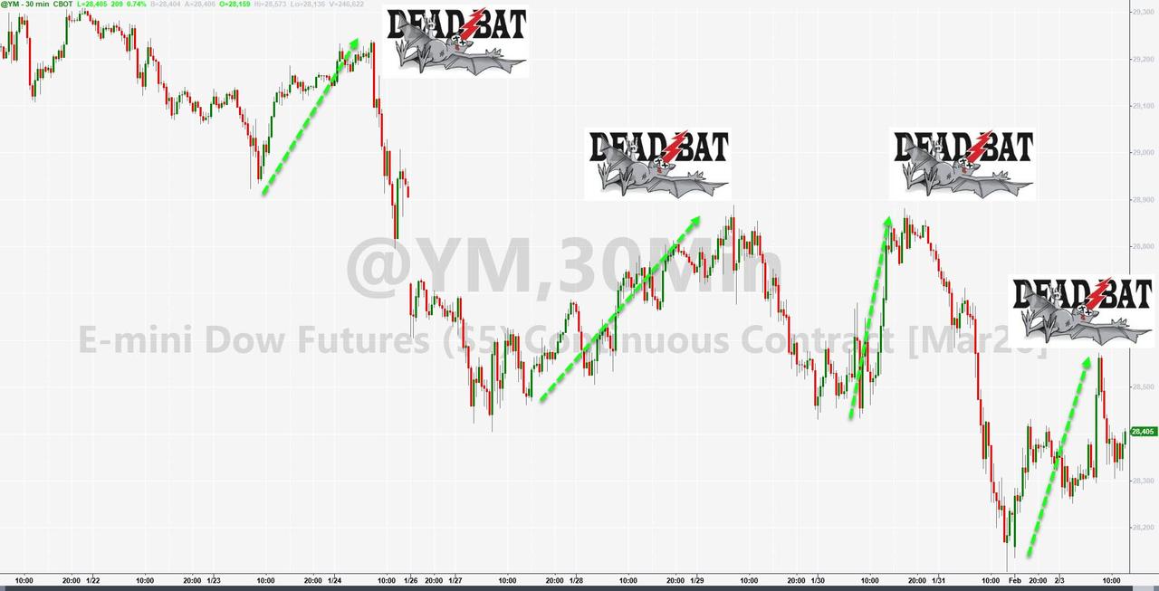Crude, Copper, & Credit Crushed As Stocks ‘Dead-Bat-Bounce’ (Again) Another day, another ‘dead-bat-bounce’ on absolutely nothing… Makes you wonder eh? China’s cash markets reopened and collapsed as expected… Source: Bloomberg European markets were all higher, thanks to a lurch upwards at the US open… Source: Bloomberg US markets ramped overnight, ramped more at the open, […]
