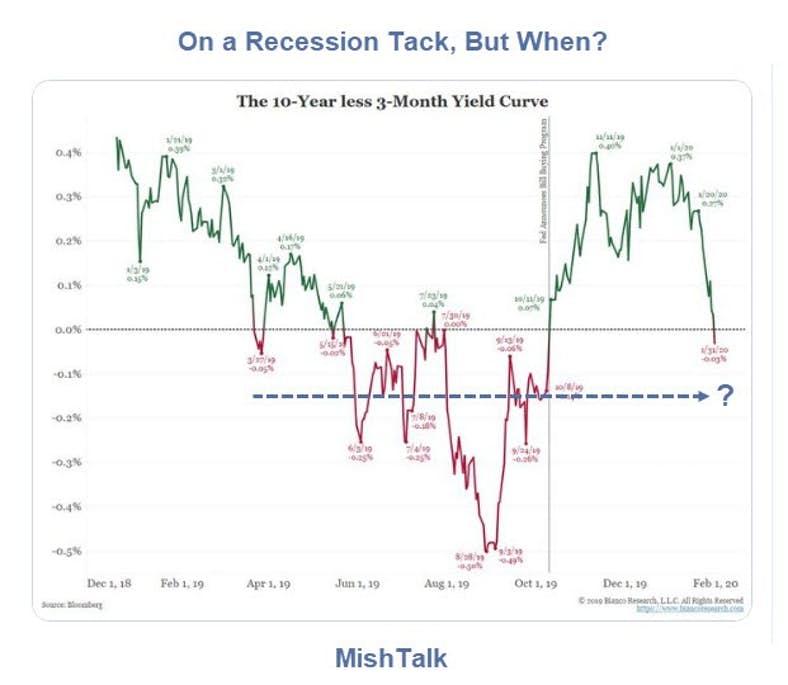 On Average, How Long From Inversion To Recession? Authored by Mike Shedlock via MishTalk, Let’s take a look at the last six recessions. How long did it take from inversion to recession? 10-Year to 3-Month Inversions In this post, we are analyzing the recession lead time from yield curve inversions as measured by by the […]