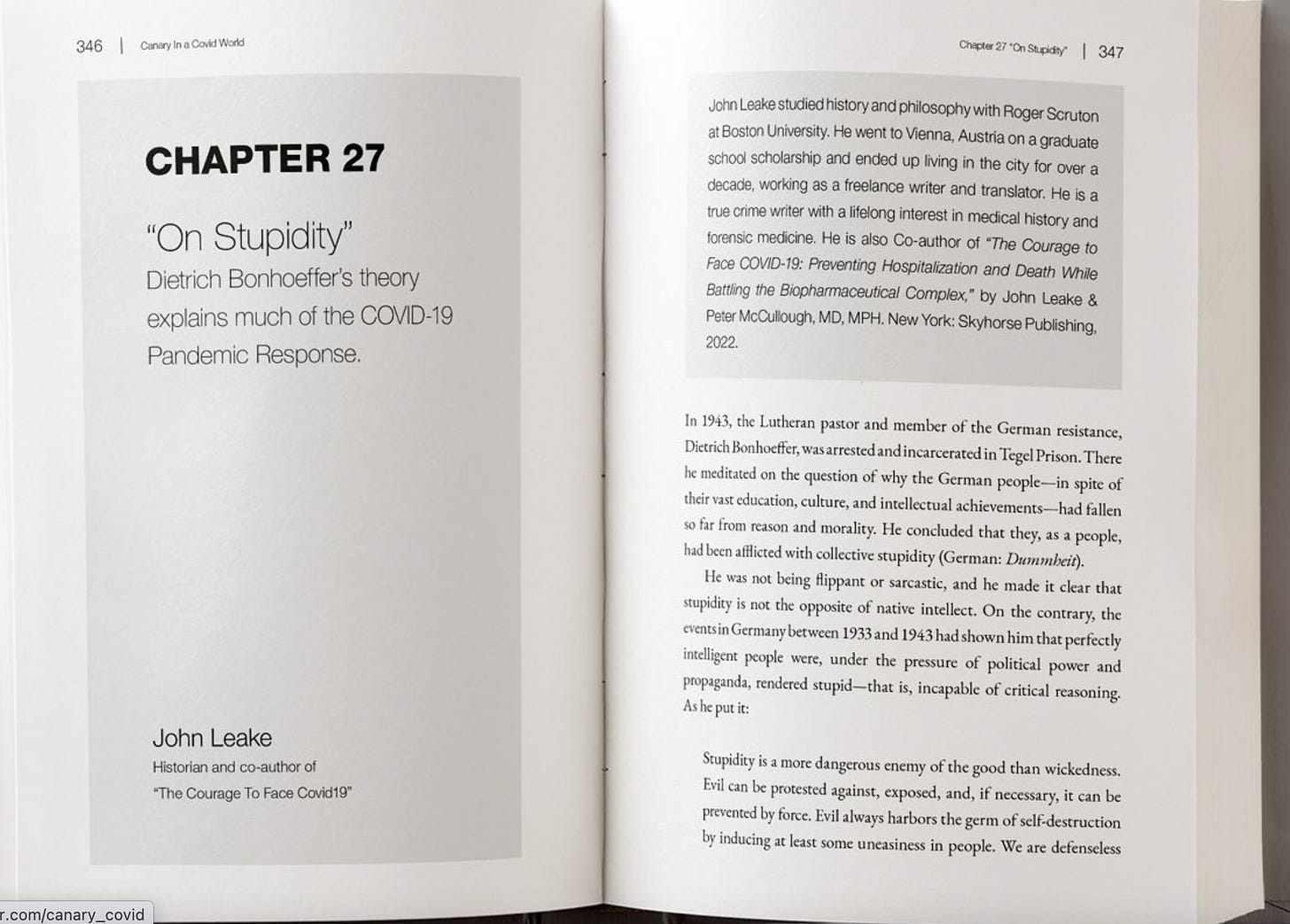 Editor Chris Klotz recently published a remarkable collection of essays by 34 thought leaders titled Canary in a Covid World: How Propaganda and Censorship Changed Our (My) World. Chris just tweeted an excerpt from my essay (Chapter 27) “On Stupidity: Dietrich Bonhoeffer’s theory explains much of the COVID-19 Pandemic Response.” Readers of this Substack are […]