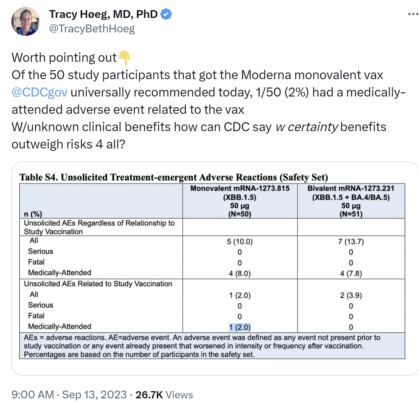 Executive summary The CDC now recommends updated Covid-19 vaccines for everyone 6 months and older. Here’s the CNN story on the CDC approval. What is the evidence for safety and effectiveness? It was tested on 50 people and only 8% needed to see a doctor after the shot. And none of the 50 people died! […]