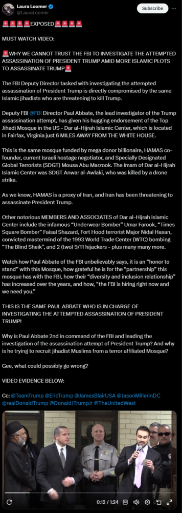 FBI’s Lead Investigator Of Trump Assassination Attempt Gave Glowing Endorsement of Top Jihadi Mosque in the U.S. As Iran Ramps Up Threats Against President Trump