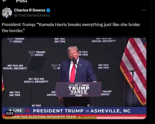 President Trump continues to lay out a contrast between himself and Kamala Harris. On Wednesday, Trump traveled to Asheville, North Carolina, to give remarks centered on improving America’s economy and securing the border. Trump informed his large crowd on Border Czar Harris’ failures, which have resulted in millions of illegal immigrants crossing into the United […]