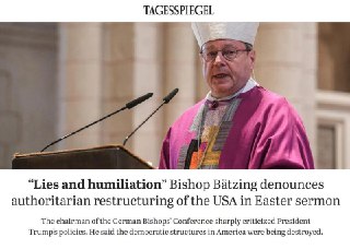NEW - Chair of the German Bishops' Conference claims Trump is destroying the "democratic structures" in America. discl...