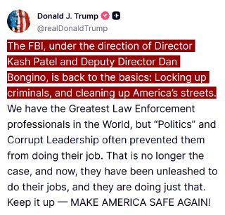 JUST IN - Trump says the FBI is "back to the basics." https://truthsocial.com/ realDonaldTrump/114813826512783399 dis...