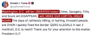NEW - Trump says "Washington, D.C. will be LIBERATED today!" and that he will "MAKE OUR CAPITAL GREAT AGAIN!" disclose...