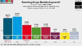 JUST IN - German opposition party AfD continues to rise in the polls, while citizens' frustration with the government re...