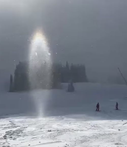 Skier films ‘portal to another world’ as bizarre column of light forms in front of them in Austrian snowstorm
